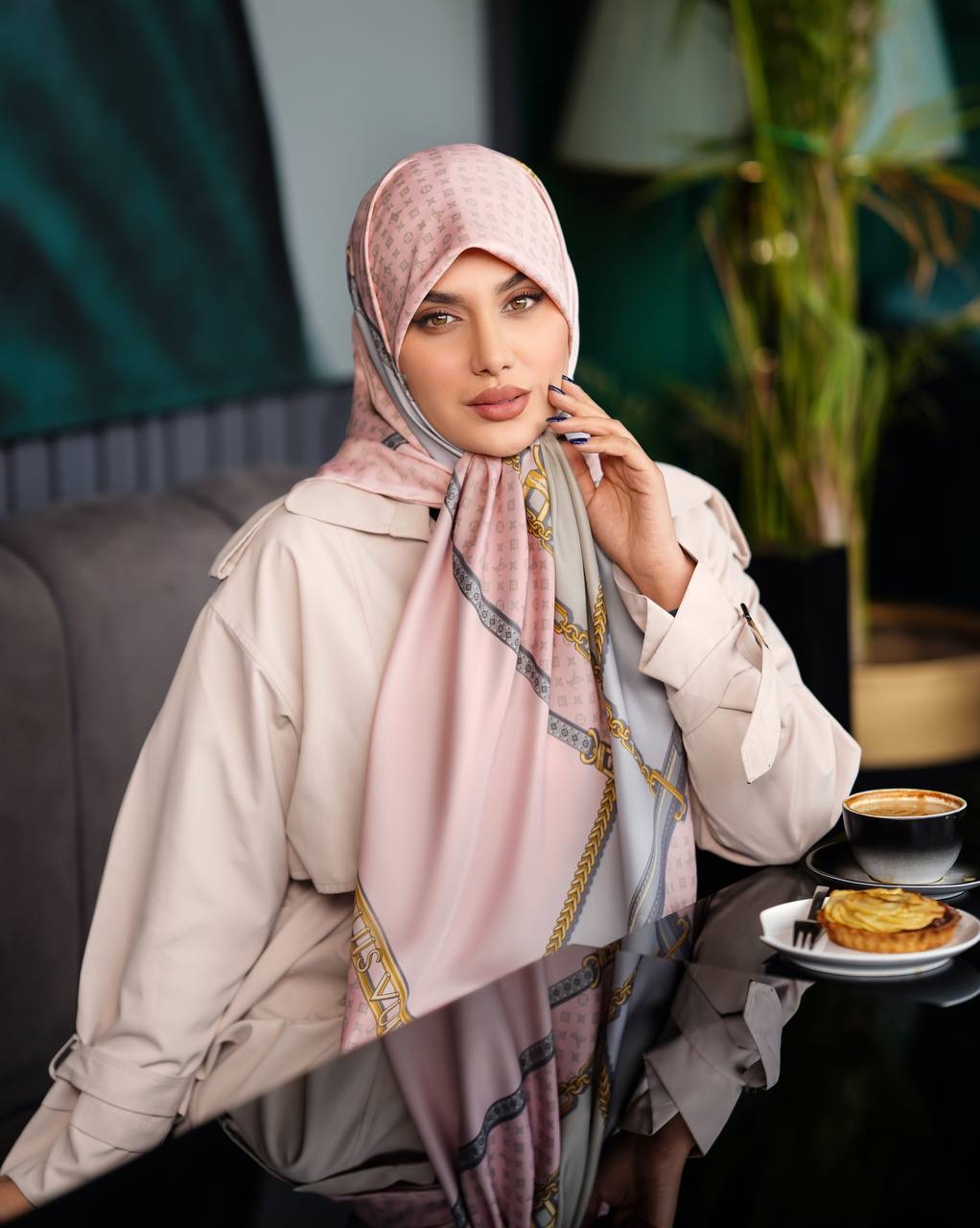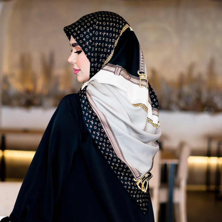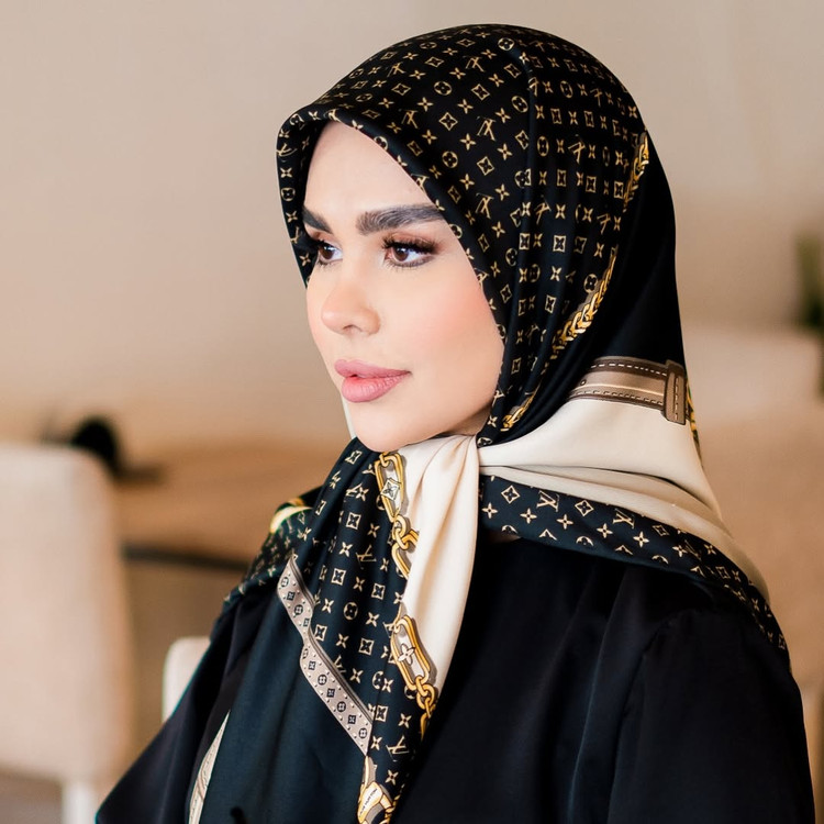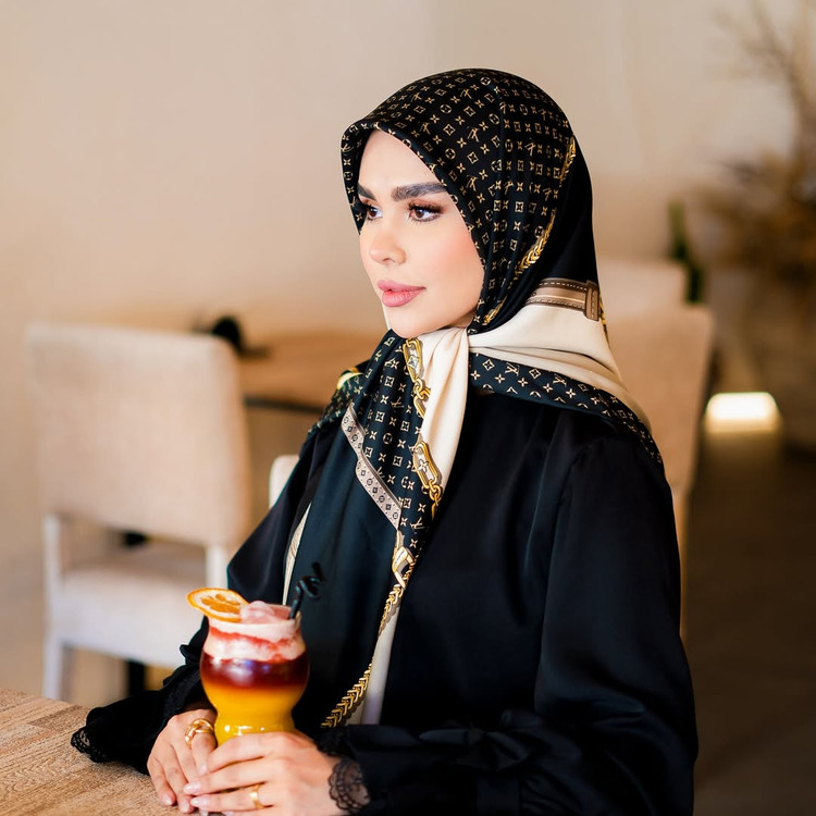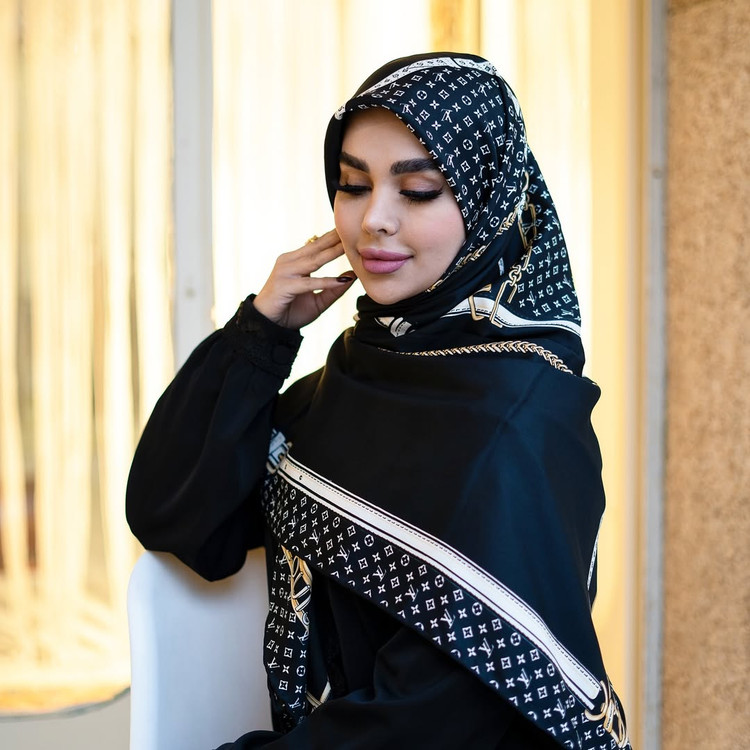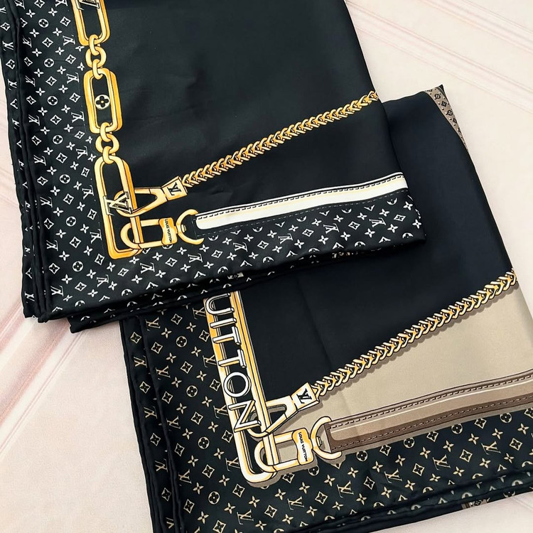 روسری مجلسی زنانه جنس ابریشم توییل طرح ال وی
