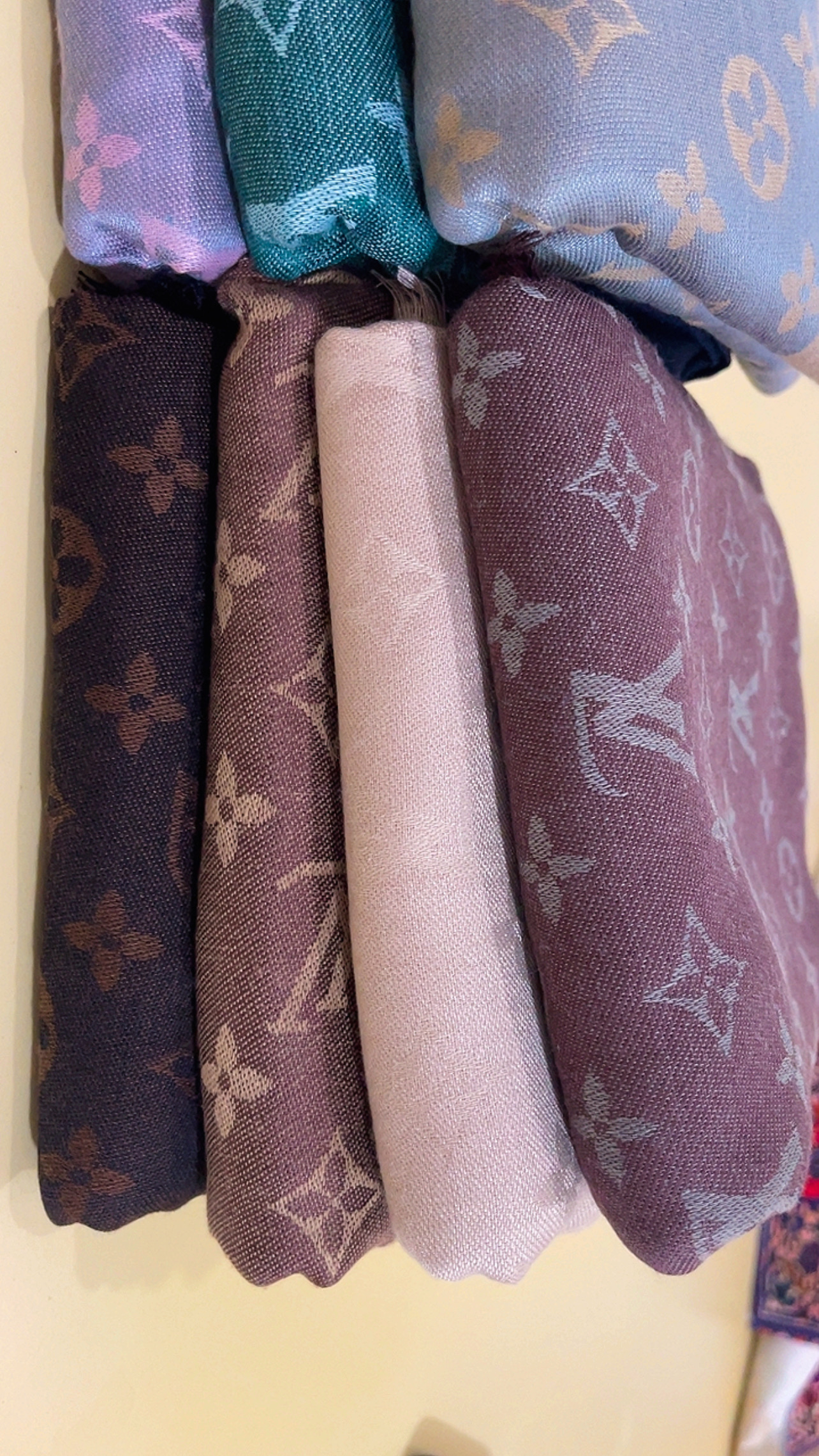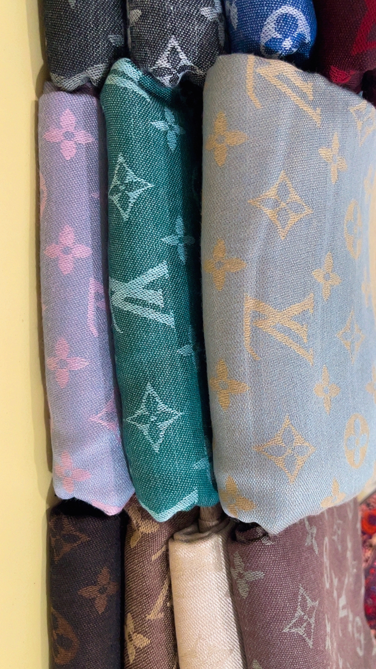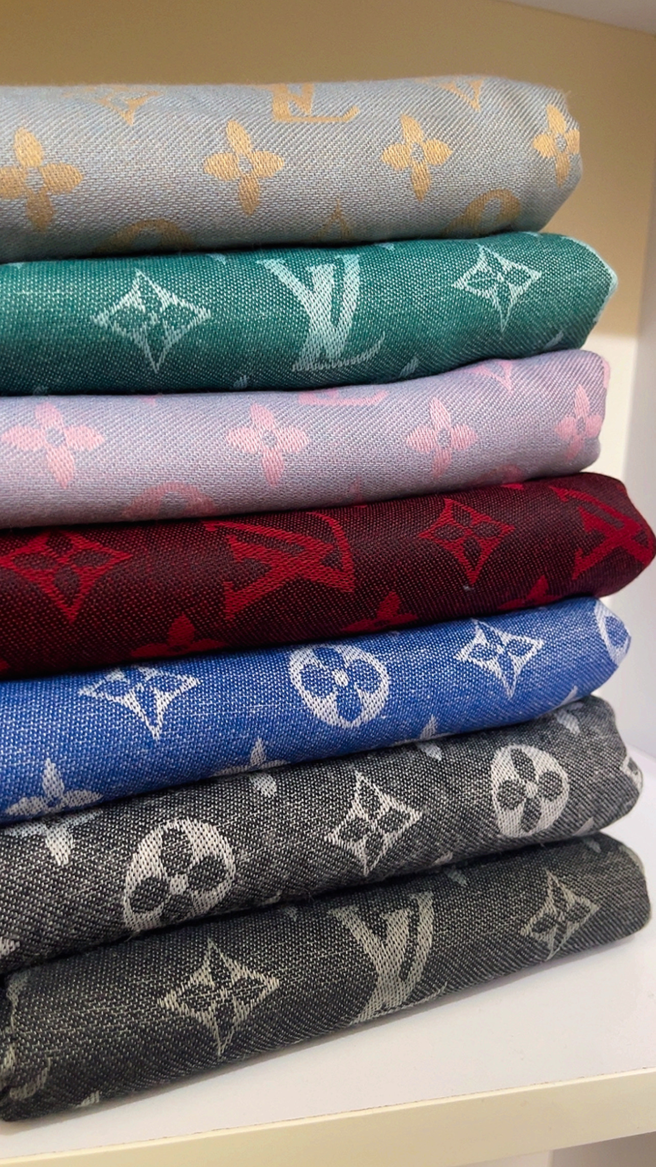 روسری نخ کشمیر ژاکارد طرح مارک ال وی قواره بزرگ
