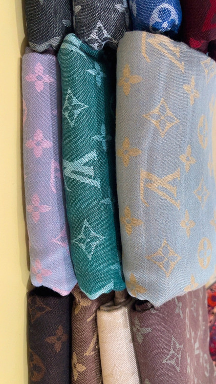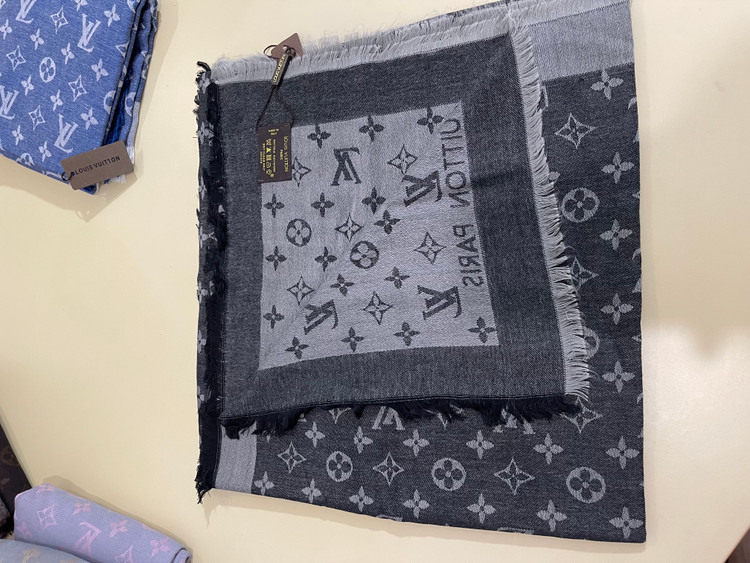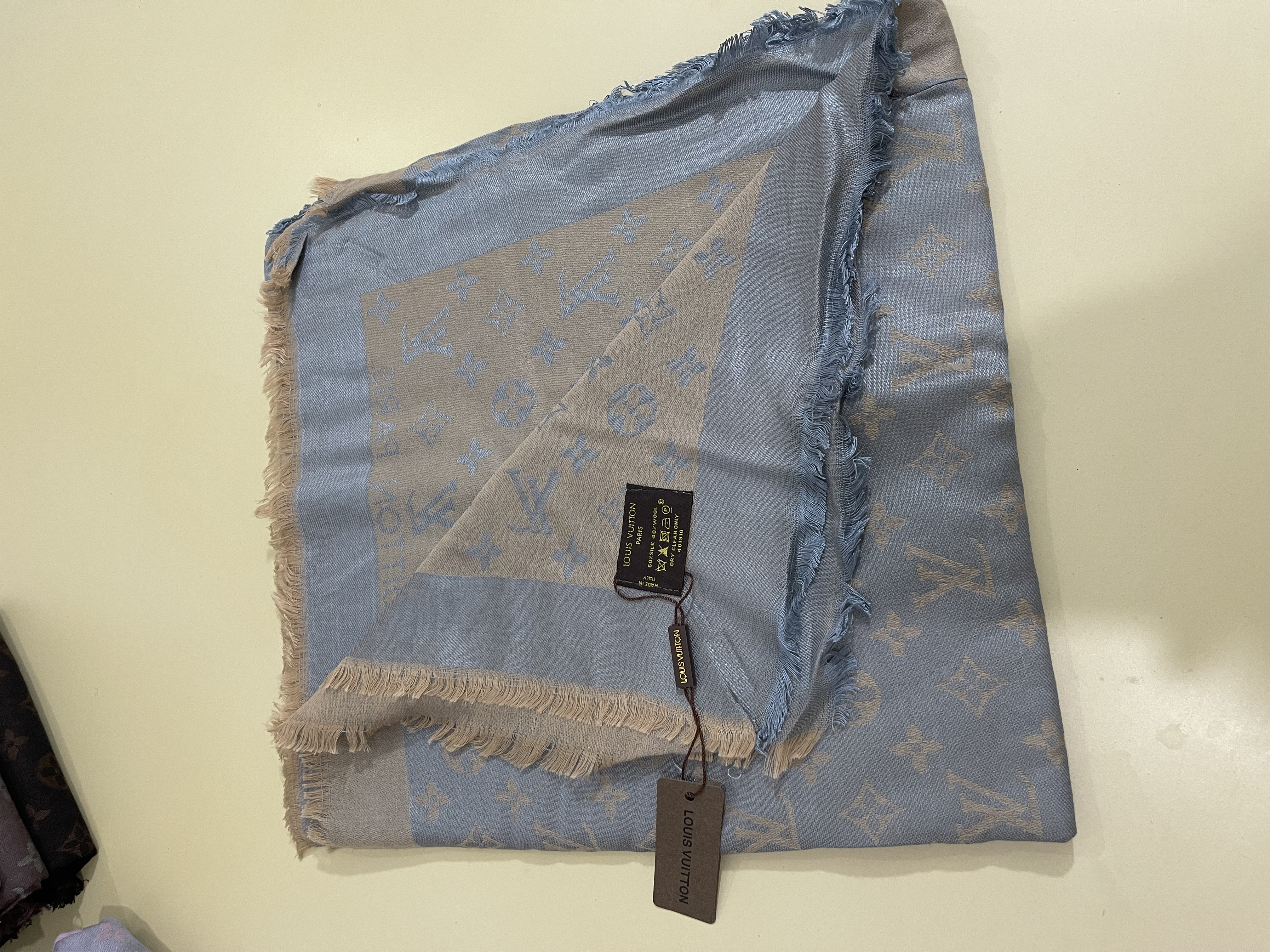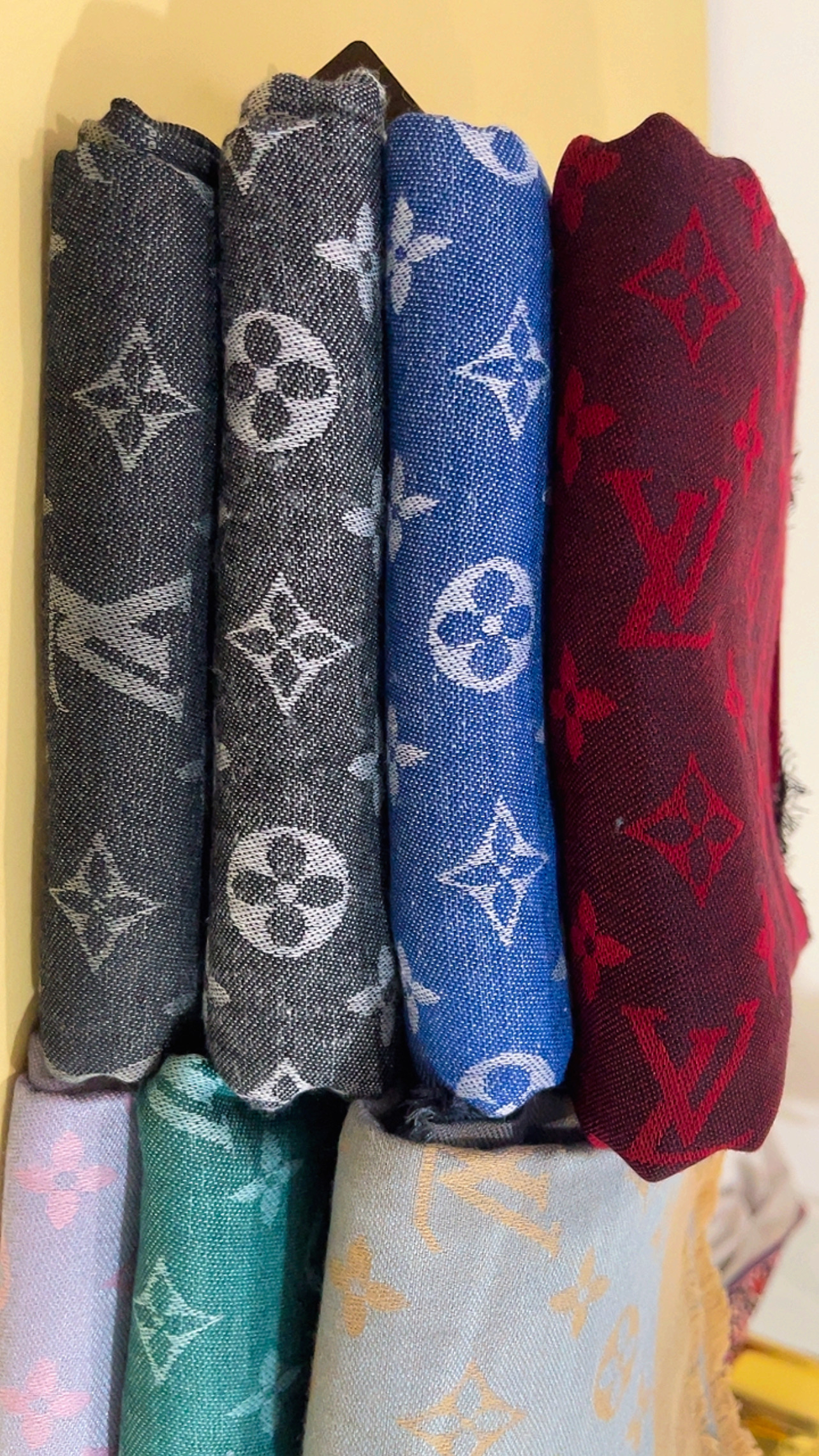 روسری نخ کشمیر ژاکارد طرح مارک ال وی قواره بزرگ