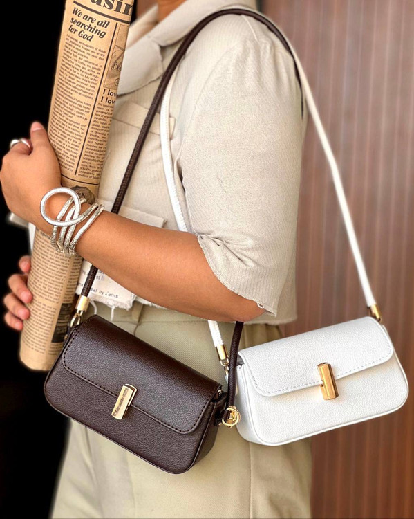 کیف دوشی زنانه جنس چرم قفل بادومی کد ۱۳۴