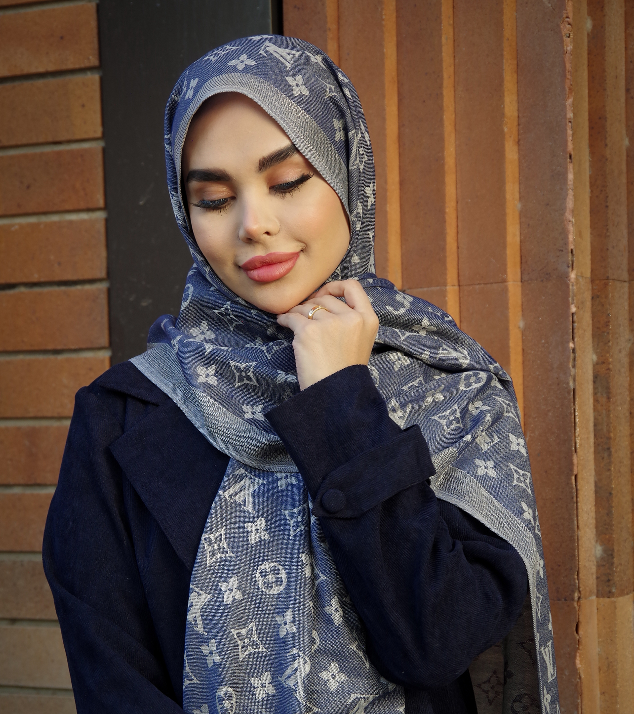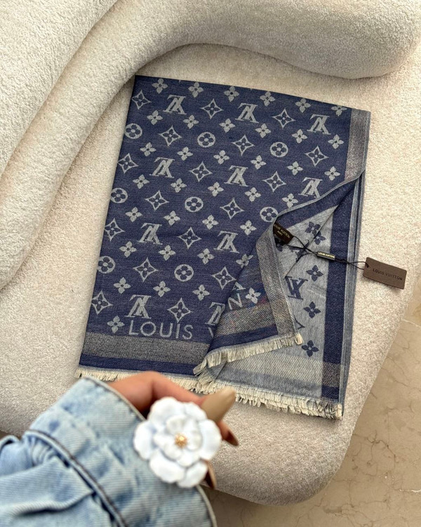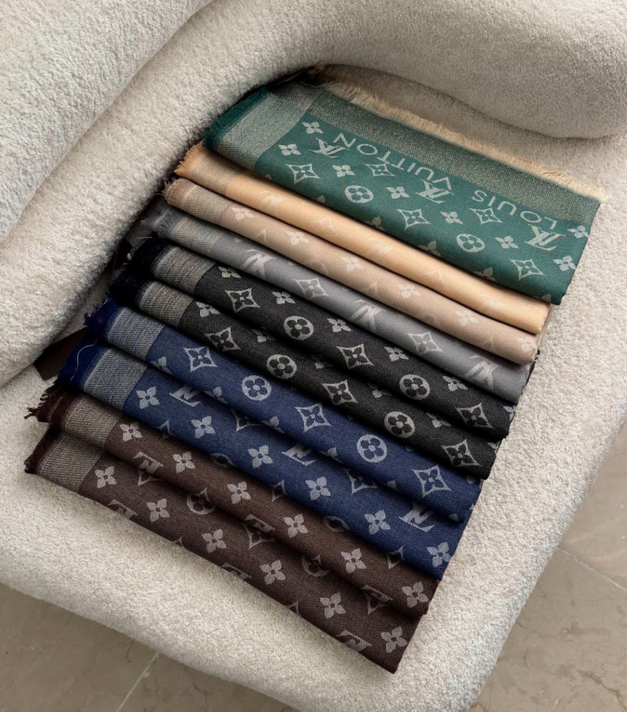 شال کشمیر اورجینال دورلمه طرح مارک برند ال وی