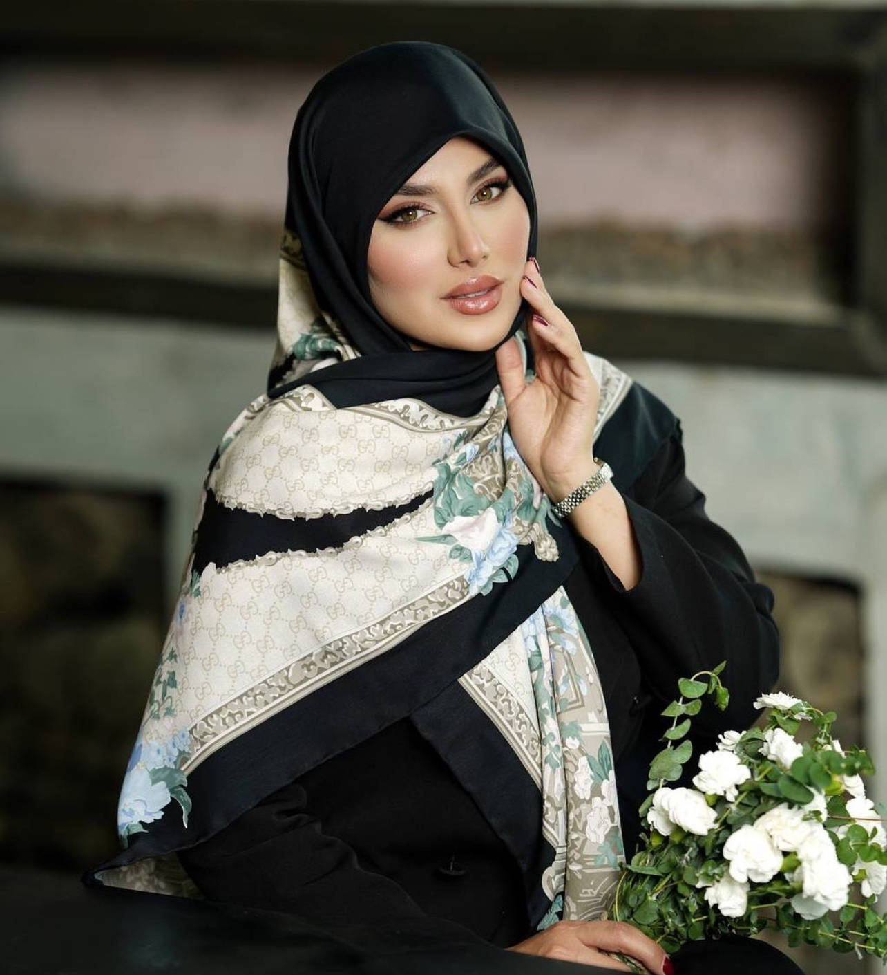 روسری نخی مجلسی زنانه جنس درجه یک دوردست دوز قواره ۱۴۰