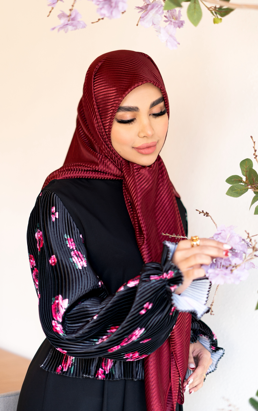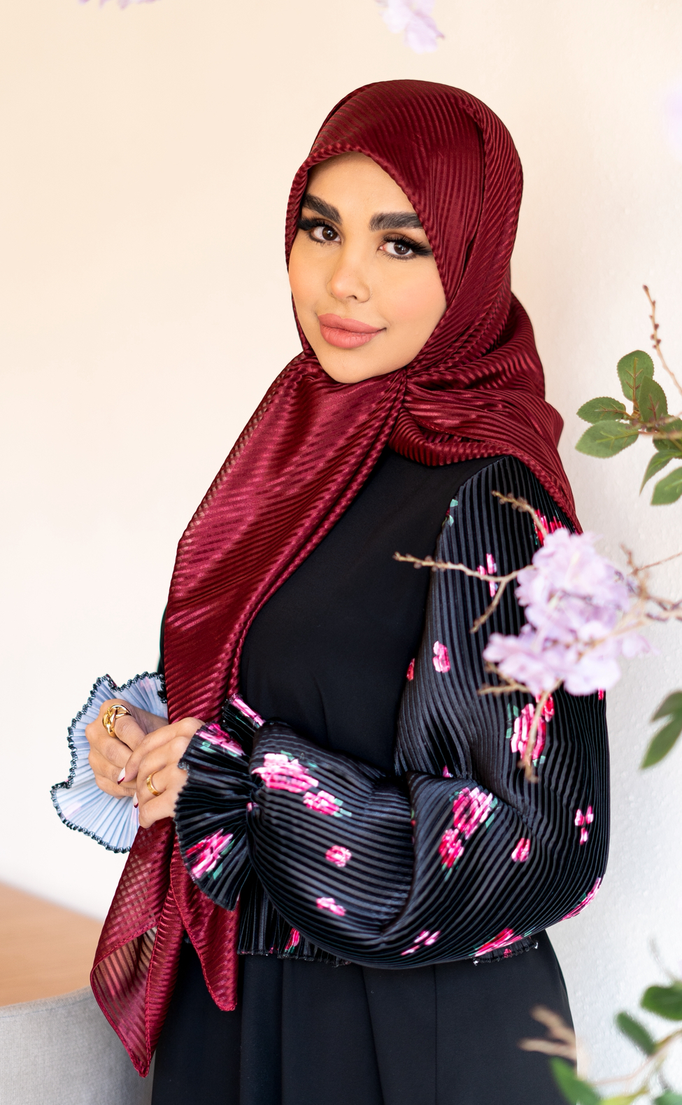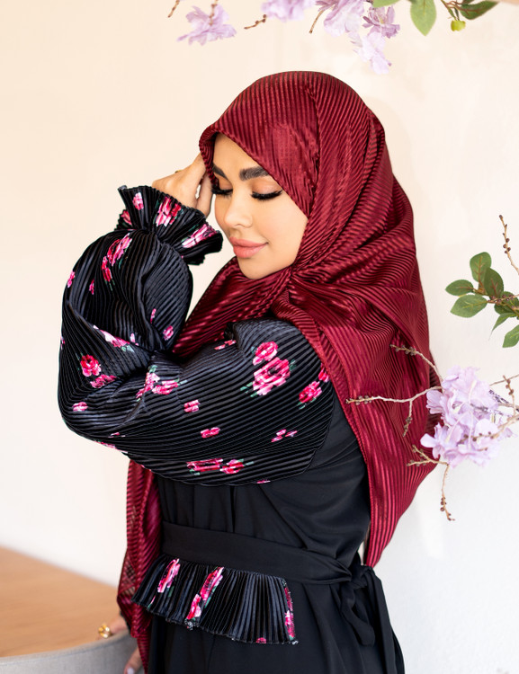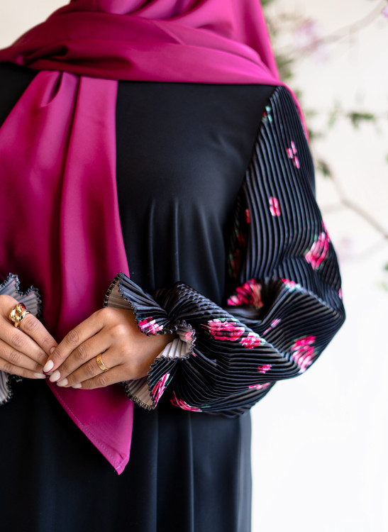 عبای زنانه مجلسی آستین پلیسه گلدار