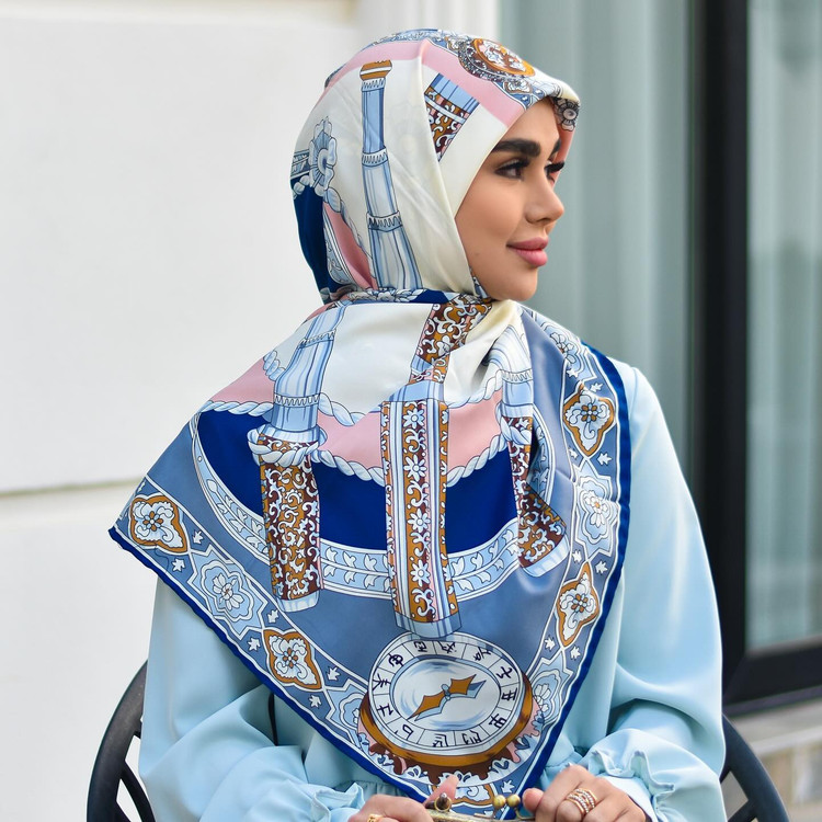روسری ابریشم طرح ساعت قواره ۱۴۰