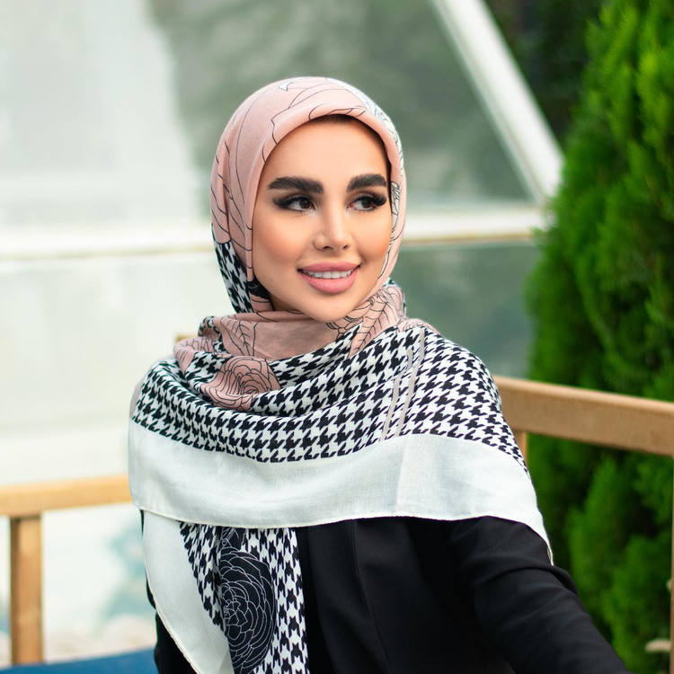 روسری نخ پنبه سیااسکارف طرح گل و پیچازی